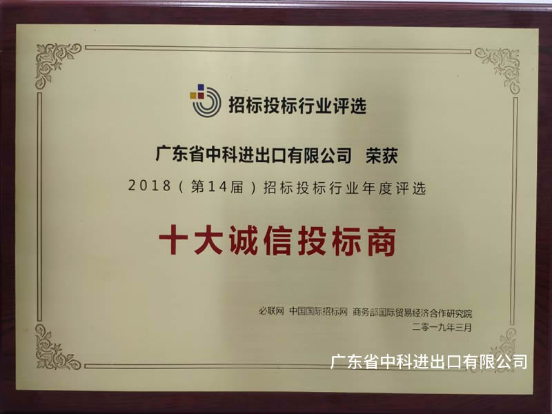 • 2018年十大誠信投標商