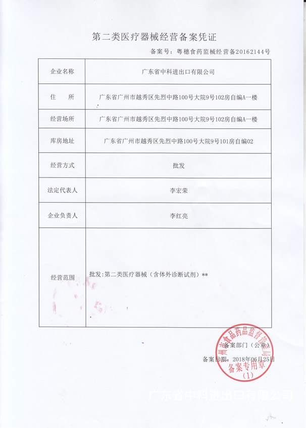 • 第二類醫療器械經營備案憑證